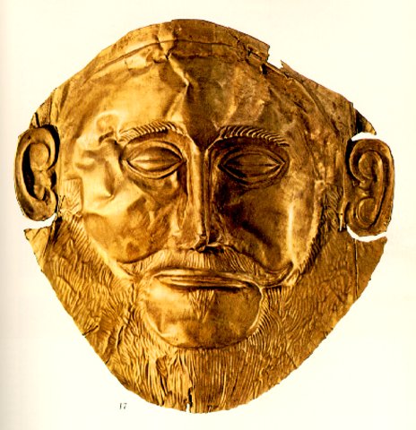 The Mask of Agamemnon, discovered in Mycenae in 1876 by Heinrich Schliemann.