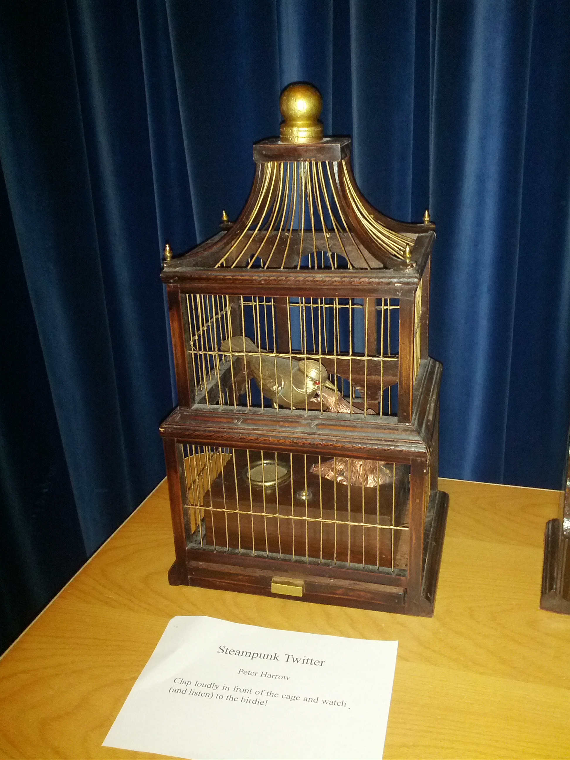 An awesome mechanical birdcage from the Gadget Exhibition. Readers of Firebrand will understand why I was so delighted to see this.